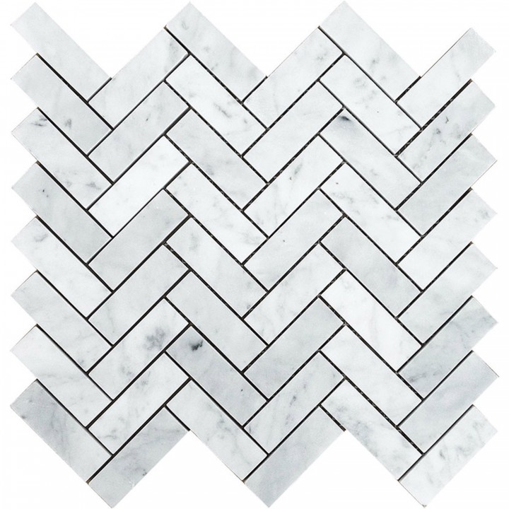 BIANCO CARRARA WHITE 1X3 GRANDE HERRINGBONE MOSAIC (1.07 sqft p/piece) (6 p/box)